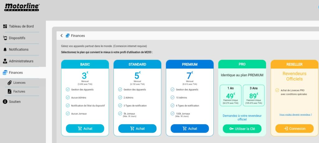 Prévoir pour le M200 une carte SIM (Sosh) environ 9€/mois – carte SD 64 Go