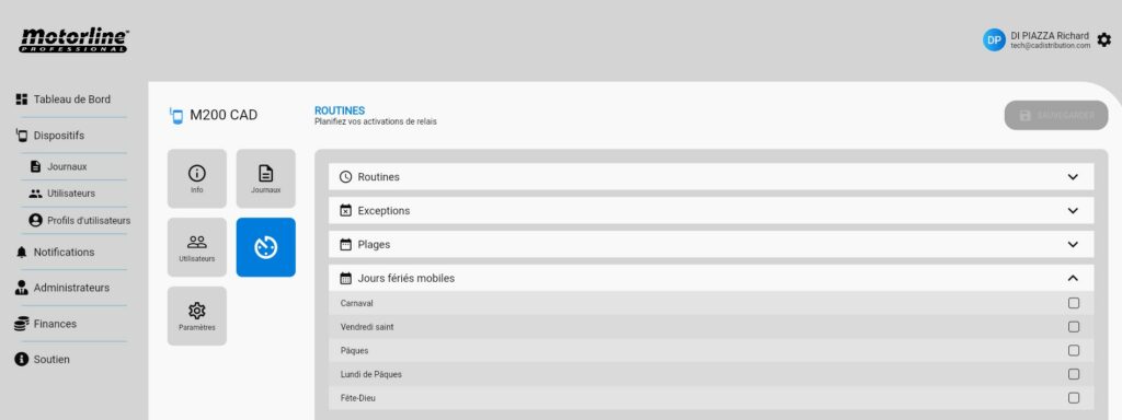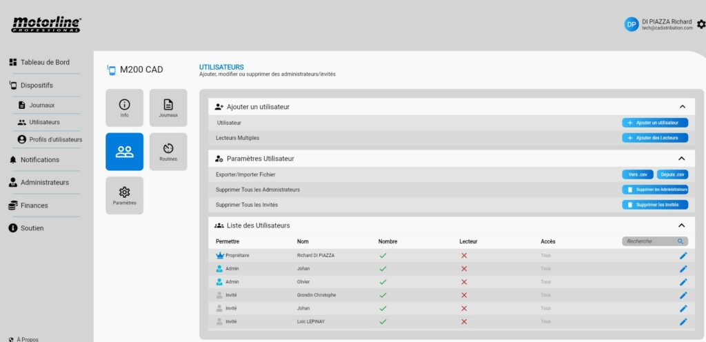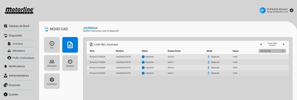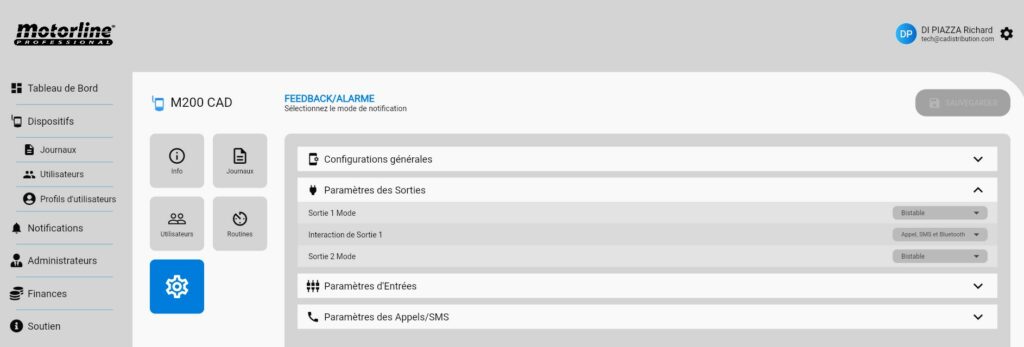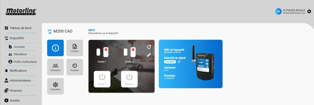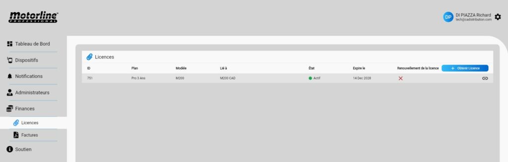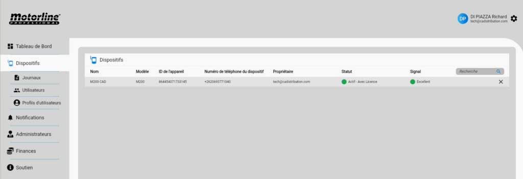 Pour activer la licence, il faut posséder d’un M200 + Carte SIM (Orange ou SFR) opérateurs fonctionnels, ensuite créer un compte sur le portail Web Motorline : https://portal.motorline.pt/ puis inscrire sont dispositif M200 (voir ci-dessous).